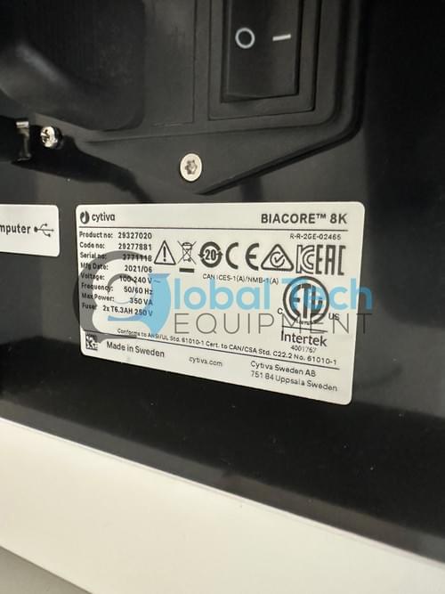 Global Tech Equipment is proud to offer this 2021 Cytiva (GE) Biacore 8k SPR system. System is complete with PC, Biacore Insight software and cables.